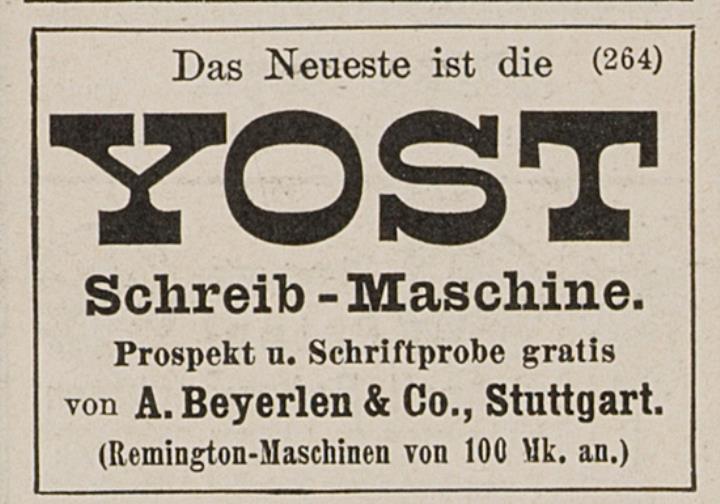 Zeitungsblatt (Illustrirte Zeitung) mit Werbeanzeige für Schreibmaschine Yost monochrom