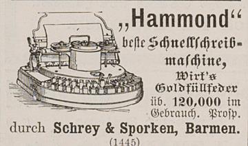 Zeitungsblatt (Illustrirte Zeitung) mit Werbeanzeige für Schreibmaschine Hammond monochrom