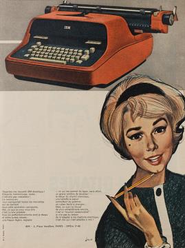 Werbeanzeige für Schreibmaschine IBM Electric polychrom; mit Passepartout