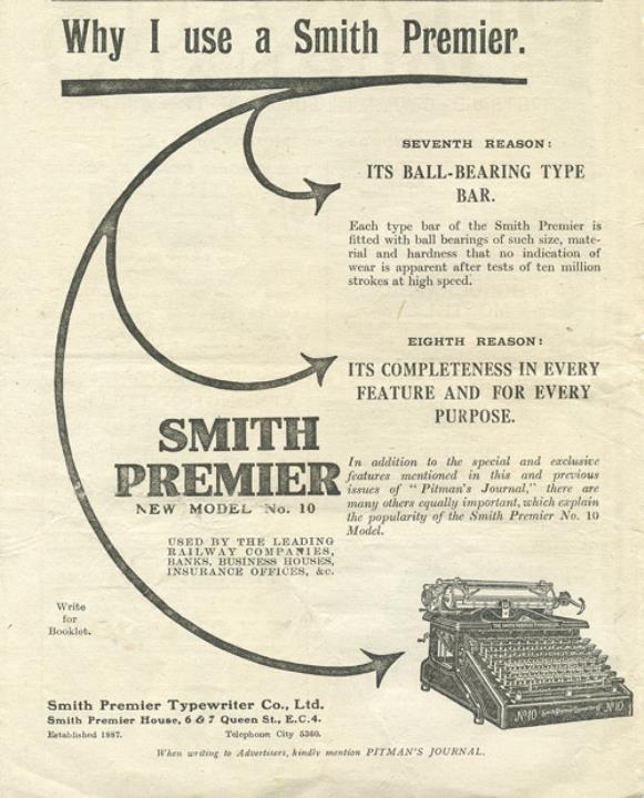 Werbeanzeige für Schreibmaschine Smith Premier 10 monochrom