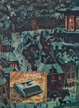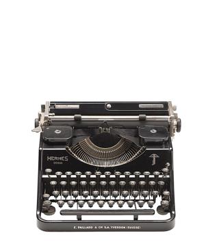 Schreibmaschine Hermes Modell 2000 Eigenschaften: Typenhebel, Vorderanschlag, einfache Umschaltung, Farbband, Tabulator Tastatur: universal, vierreihig, 44 Schreibtasten Konstrukteur: Giuseppe Prezioso Besonderheit: eckige Farbbandabdeckung