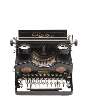 Schreibmaschine Carmen Eigenschaften: Typenhebel, Vorderanschlag, doppelte Umschaltung, Farbband Tastatur: universal, dreireihig, 30 Schreibtasten Konstrukteur: Carl Pistorius
