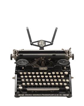 Schreibmaschine Merz Modell 2 Eigenschaften: Typenhebel, Vorderanschlag, einfache Umschaltung, Farbband Tastatur: universal, vierreihig, 44 Schreibtasten Konstrukteur: Adolf Fritz Schauss andere Bezeichnung: Concord Besonderheit: Leerschritttaste mit rutschfestem Belag