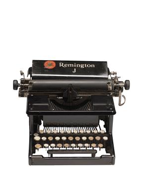 Schreibmaschine Remington Modell J Eigenschaften: Typenhebel, Vorderanschlag, doppelte Umschaltung (Segment), Farbband Tastatur: universal, tschechisch, dreireihig, 30 Schreibtasten Konstrukteur: Arthur William Smith, John Henry Barr Besonderheit: Farbbandspulen hinter der Walze; Exportmodell der Remington Junior