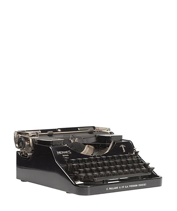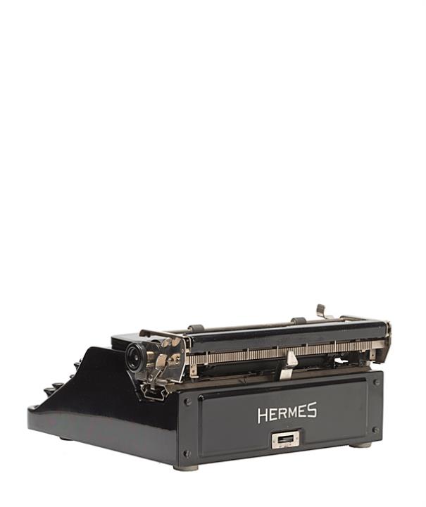 Schreibmaschine Hermes Modell 2000 Eigenschaften: Typenhebel, Vorderanschlag, einfache Umschaltung, Farbband, Tabulator Tastatur: universal, vierreihig, 44 Schreibtasten Konstrukteur: Giuseppe Prezioso Besonderheit: eckige Farbbandabdeckung, Seriennummer 24969