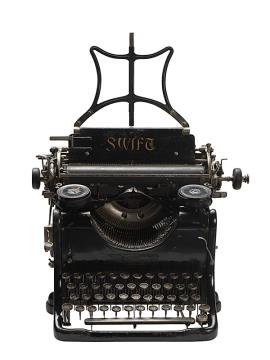 Schreibmaschine Swift (Stoewer Record) Eigenschaften: Typenhebel, Vorderanschlag, einfache Umschaltung, Farbband, separater Hebel für Wagenrückführung Tastatur: universal, vierreihig, 44 Schreibtasten Konstrukteur: Paul Grützmann