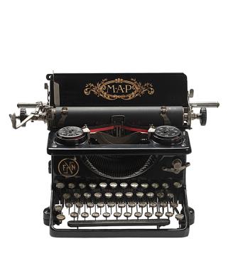 Schreibmaschine M.A.P. Modell 3 Eigenschaften: Typenhebel, Vorderanschlag, einfache Umschaltung, Farbband, Tabulator Tastatur: universal, französisch, vierreihig, 42 Schreibtasten Konstrukteur: Halcolm Gordon Ellis