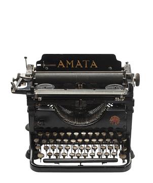 Schreibmaschine Amata Eigenschaften: Typenhebel, Vorderanschlag, einfache Umschaltung, Farbband, Tabulator Tastatur: universal, vierreihig, 44 Schreibtasten Konstrukteur: Adolf Reisser
