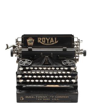 Schreibmaschine Royal Modell 5 Eigenschaften: Typenhebel, Vorderanschlag, einfache Umschaltung, Farbband, Tabulator Tastatur: universal, vierreihig, 42 Schreibtasten Konstrukteur: Edward Bernhard Hess, Lewis Cary Meyers Besonderheit: spezielles Typenhebelgetriebe für einen schnellen und leichten Anschlag