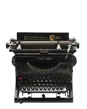 Schreibmaschine Fox Modell 25 Eigenschaften: Typenhebel zweireihig, Vorderanschlag, einfache Umschaltung, Farbband Tastatur: universal, vierreihig, 44 Schreibtasten Konstrukteur: William Ross Fox Besonderheit: Tasten- und Typenhebel aus Aluminium