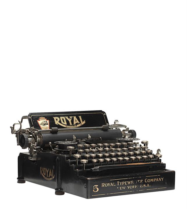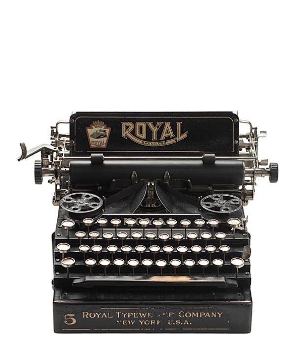 Schreibmaschine Royal Modell 5 Eigenschaften: Typenhebel, Vorderanschlag, einfache Umschaltung, Farbband, Tabulator Tastatur: universal, vierreihig, 42 Schreibtasten Konstrukteur: Edward Bernhard Hess, Lewis Cary Meyers Besonderheit: spezielles Typenhebelgetriebe für einen schnellen und leichten Anschlag, Seriennummer 307988-5