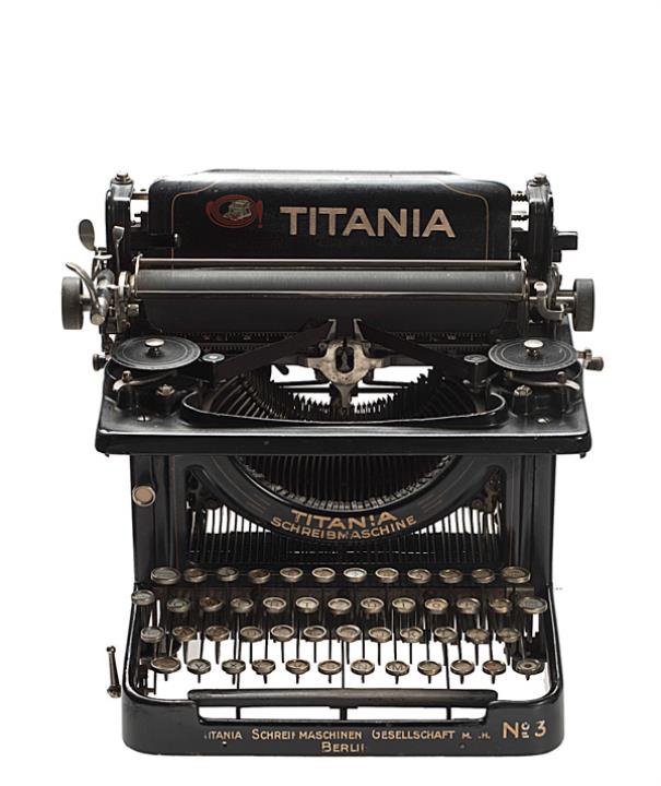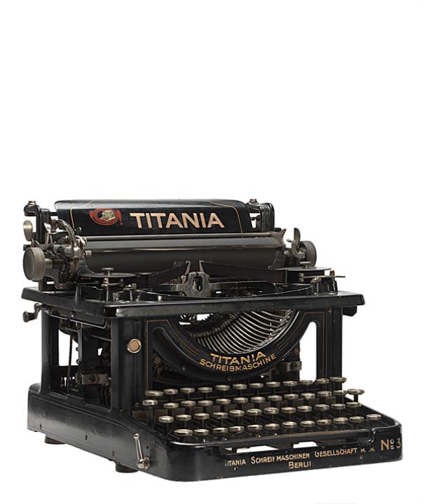 Schreibmaschine Titania Modell 3 Eigenschaften: Typenhebel, Vorderanschlag, einfache Umschaltung (Segment), Farbband, Tabulator Tastatur: universal, vierreihig, 42 Schreibtasten Konstrukteur: Emil Schliephack Besonderheit: Typenhebel mit Kugellager, Seriennummer 9616