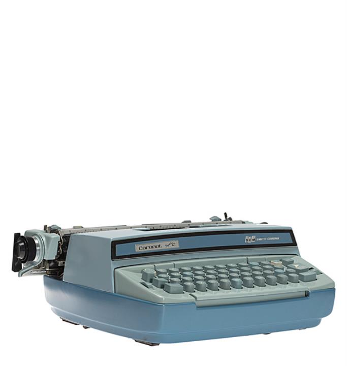 Elektrische Schreibmaschine Smith Corona Modell Coronet Super 12 Eigenschaften: Typenhebel, Vorderanschlag, einfache Umschaltung, Farbbandkassette Coronamatic, Elektromotor (117V/A.C., 44W) Tastatur: universal, vierreihig, 44 Schreibtasten, Seriennummer 6LEA 524766-3