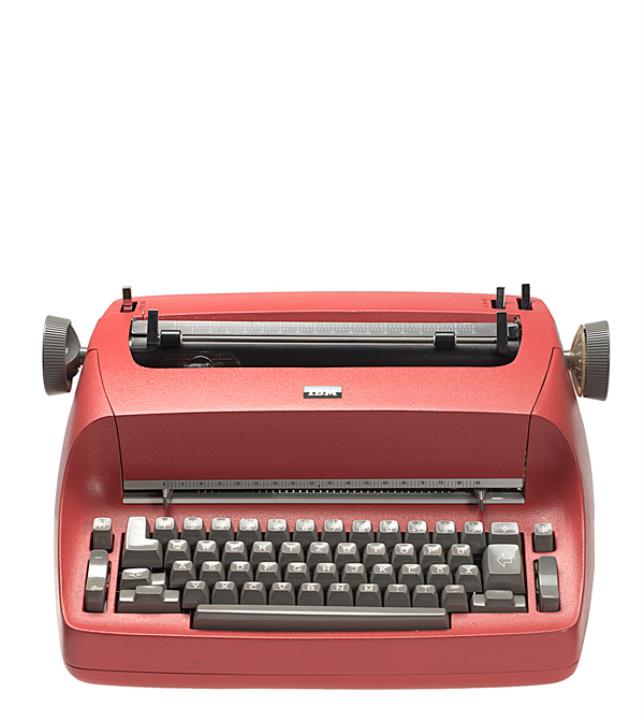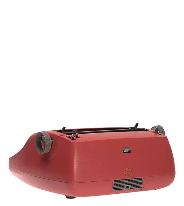 Elektrische Schreibmaschine IBM Modell Selectric (6121 / 7XXD) Eigenschaften: Typenkugel, Vorderanschlag, einfache Umschaltung, Karbonband, Elektromotor (200V, 50Hz, 50W) Tastatur: universal, vierreihig, 44 Schreibtasten Design: Eliot Fette Noyes Besonderheit: erste elektrische Kugelkopfschreibmaschine, Seriennummer 711 580422 (961)