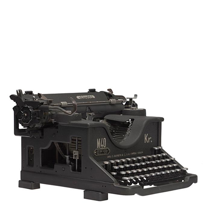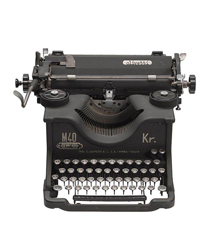 Schreibmaschine Olivetti Modell M40 Kr (Vereinfachte Kriegsausführung) Eigenschaften: Typenhebel, Vorderanschlag, einfache Umschaltung (Segment), Farbband Tastatur: universal, vierreihig, 45 Schreibtasten Konstrukteur: Camillo Olivetti, Gino Levi Martinoli Besonderheit: speziell für die deutsche Wehrmacht produziert; gehörte Konrad Kujau, Seriennummer K379518