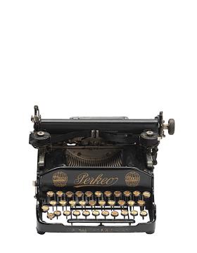 Klappbare Schreibmaschine Perkeo Modell 2 Eigenschaften: Typenhebel, Vorderanschlag, doppelte Umschaltung, Farbband Tastatur: universal, dreireihig, 30 Schreibtasten Konstruktion: nach Jakob Heil