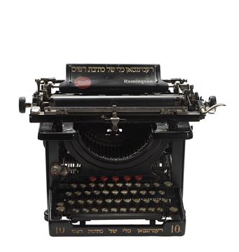 Schreibmaschine Remington Modell 10 Eigenschaften: Typenhebel, Vorderanschlag, einfache Umschaltung, Farbband, Tabulator Tastatur: universal, hebräisch, vierreihig, 42 Schreibtasten Konstrukteur: Oscar Woodward Besonderheit: erstes Remington-Modell mit sichtbarer Schrift