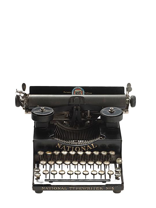 Schreibmaschine National Modell 5 Eigenschaften: Typenhebel, Vorderanschlag, doppelte Umschaltung, Farbband Tastatur: universal, dreireihig, 28 Schreibtasten Konstrukteur: Hubert K. Henry andere Bezeichnung: Portex, Seriennummer 17003