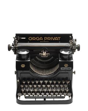 Schreibmaschine Orga Privat Modell 5 Eigenschaften: Typenhebel, Vorderanschlag, einfache Umschaltung, Farbband Tastatur: universal, griechisch, vierreihig, 42 Schreibtasten Konstrukteur: Ludwig Reischl