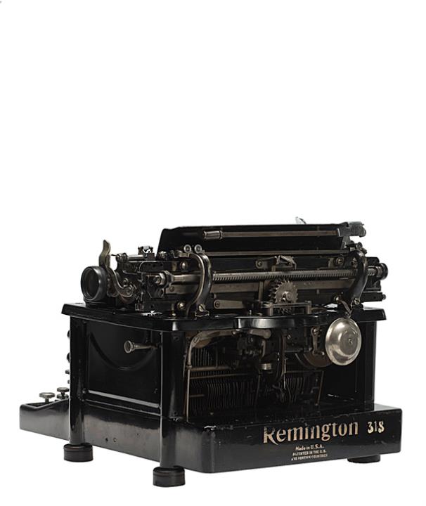 Schreibmaschine Remington Modell 50 Eigenschaften: Typenhebel, Vorderanschlag, einfache Umschaltung, Farbband Tastatur: universal, arabisch, vierreihig, 42 Schreibtasten Konstrukteur: Oscar Woodward Besonderheit: Wagenlauf in beide Richtungen, Seriennummer W138155