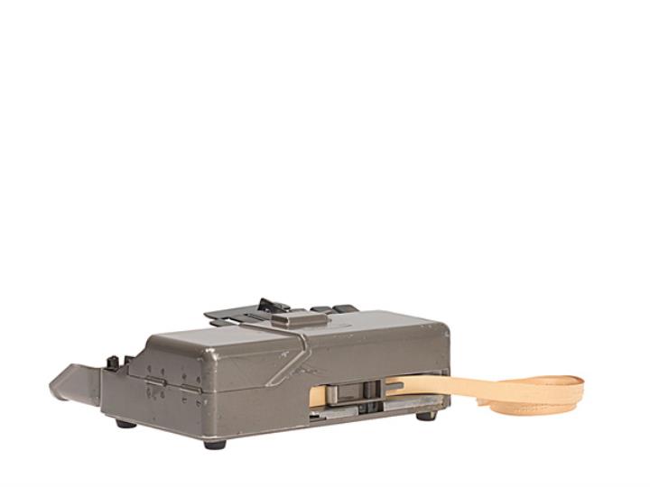Blinden-Stenografiermaschine Blista im aufklappbaren Gehäuse Eigenschaften: Streifenschreiber, Punktstifte (6-Punkt-Braille), 6 Punkttasten, aufklappbare Leertaste, Papierprägung im Vorderanschlag, Seriennummer 32101