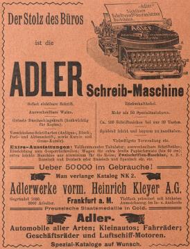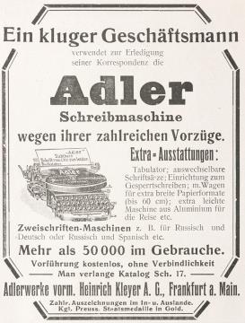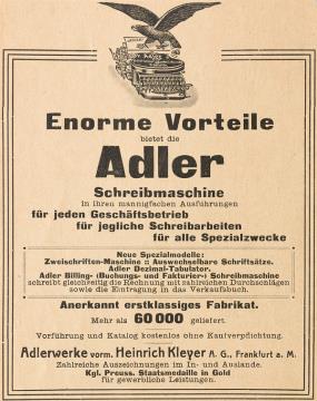 Adler Schreibmaschine. Ueber 50000 im Gebrauche!