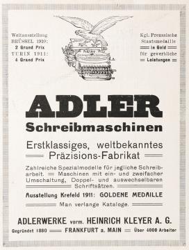 Werbeanzeige für Schreibmaschine Adler polychrom