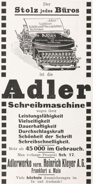 Werbeanzeige für Schreibmaschine Adler monochrom