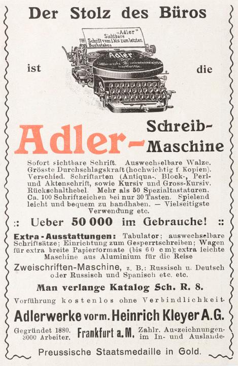 Werbeanzeige für Schreibmaschine Adler polychrom