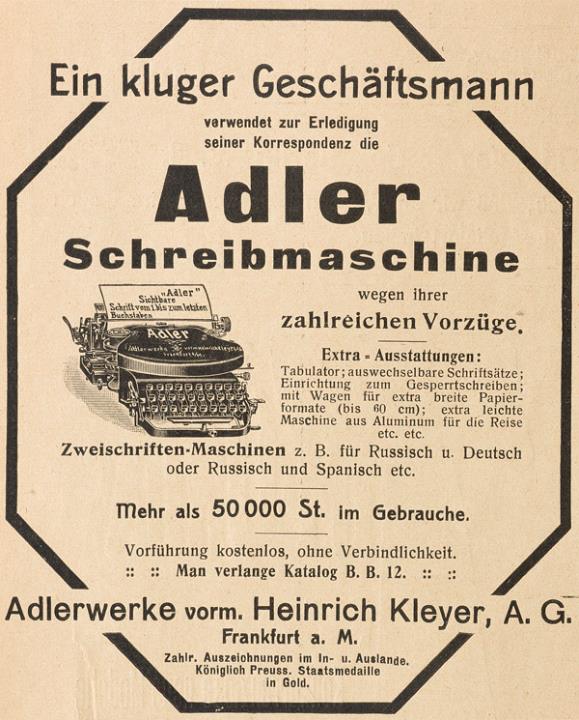 Ein kluger Geschäftsmann verwendet [...] Adler Schreibmaschine