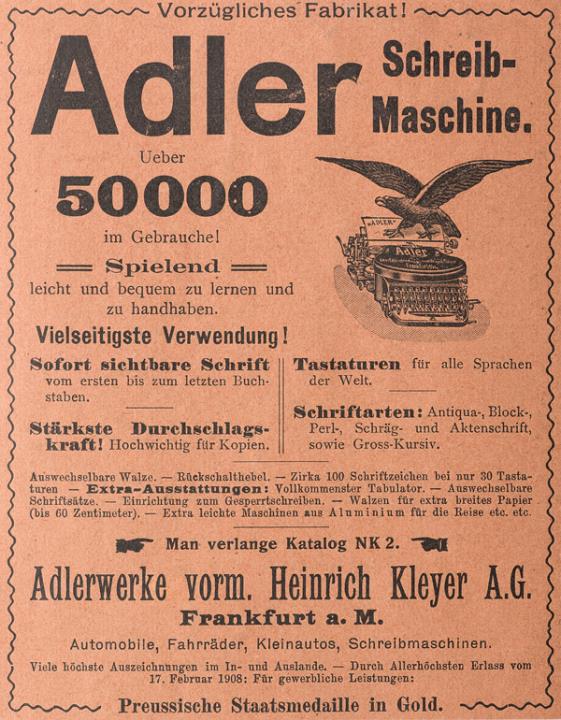 Adler Schreibmaschine. Ueber 50000 im Gebrauche!