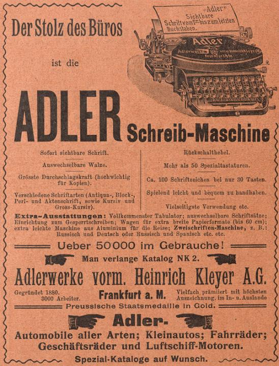 Werbeanzeige für Schreibmaschine Adler monochrom