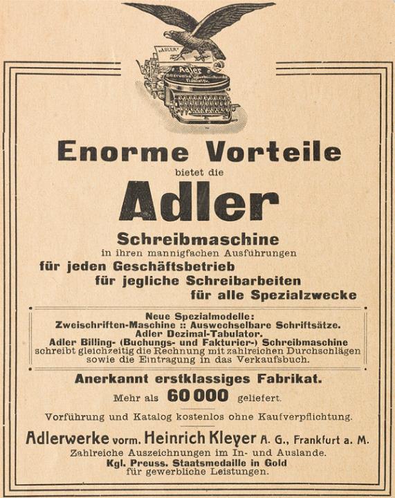 Werbeanzeige für Schreibmaschine Adler monochrom