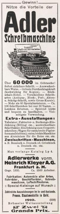 Werbeanzeige für Schreibmaschine Adler monochrom