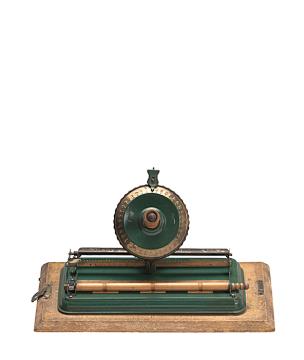 Schreibmaschine Euréka (Farbe grün) mit Holzabdeckung Eigenschaften: Zeiger/Eintaster, Typenrad, Großbuchstaben, Oberanschlag, Farbröllchen Hersteller: K-B Paris / N. K. Atlas Paris Besonderheit: wurde unter der Bezeichnung Stollwerck (Aufschrift rund um den Drehknopf) vom gleichnamigen Schokoladenhersteller als Werbegeschenk verteilt andere Bezeichnung: la Francaise, American, Atlas Index