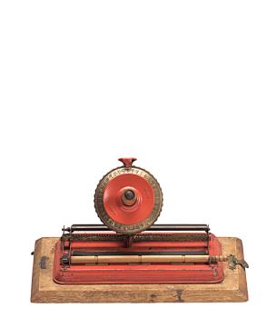 Schreibmaschine Mettoy Elegant Eigenschaften: Zeiger, Typenrad, Groß-/Kleinbuchstaben, Vorderanschlag, Farbband, Blendtastatur Konstrukteur: Samuel Irving Berger