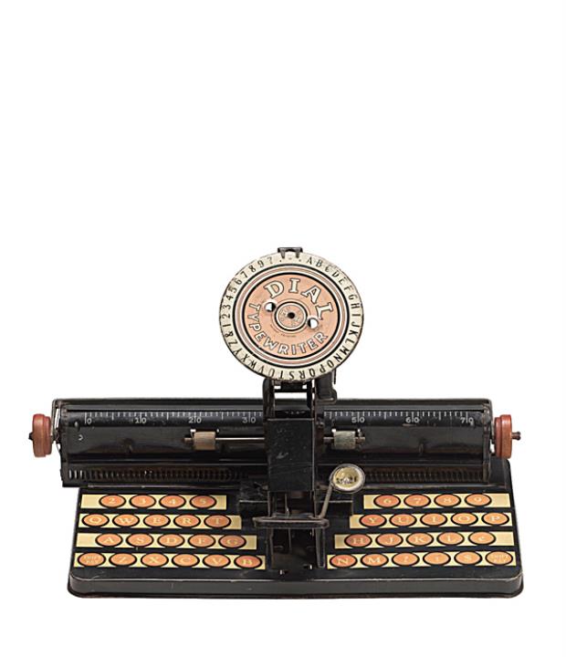 Schreibmaschine Dial Eigenschaften: Zeiger, Typenrad, Großbuchstaben, Oberanschlag, Farbröllchen (fehlt), Blendtastatur aus Blech