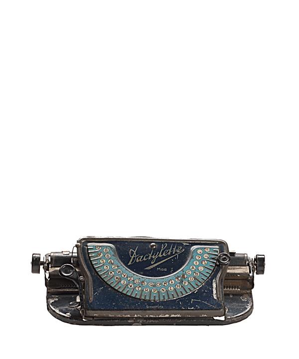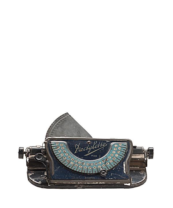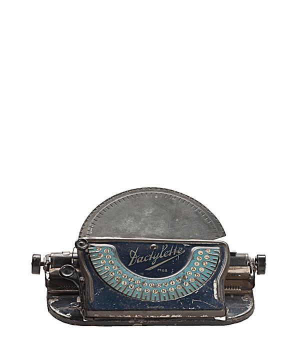 Schreibmaschine Dactylette Modell 1 Eigenschaften: Zeiger/Eintaster, Typenplatte (Halbmond), Großbuchstaben, Oberanschlag, Farbröllchen