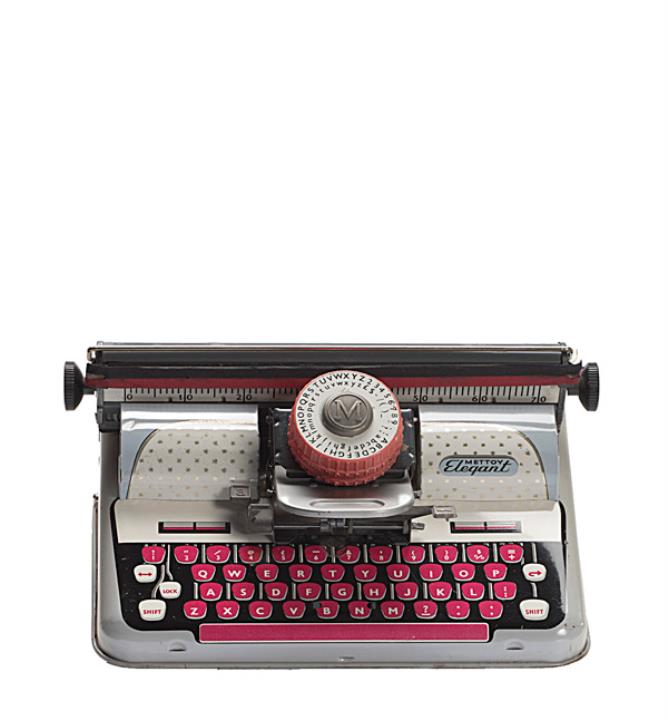 Schreibmaschine Mettoy Elegant Eigenschaften: Zeiger, Typenrad, Groß-/Kleinbuchstaben, Vorderanschlag, Farbband, Blendtastatur Konstrukteur: Samuel Irving Berger