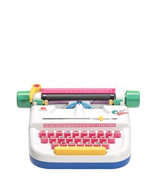Schreibmaschine My first Office Eigenschaften: Zeiger, Typenrad aus Plastik, Vorderanschlag, Karbonband, ausziehbarer Tragehebel, Spieltastatur mit 26 Tierbildern andere Bezeichnung: My first Typewriter