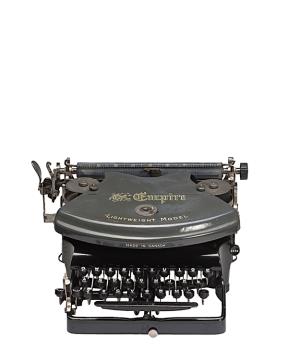 Schreibmaschine Empire Modell 1 Lightweight Eigenschaften: Typenstangen, Vorderanschlag, doppelte Umschaltung, Farbband Tastatur: universal, dreireihig, 28 Schreibtasten Konstrukteur: Wellington Parker Kidder Besonderheit: von der kanadischen und britischen Armee als Feldschreibmaschine genutzt