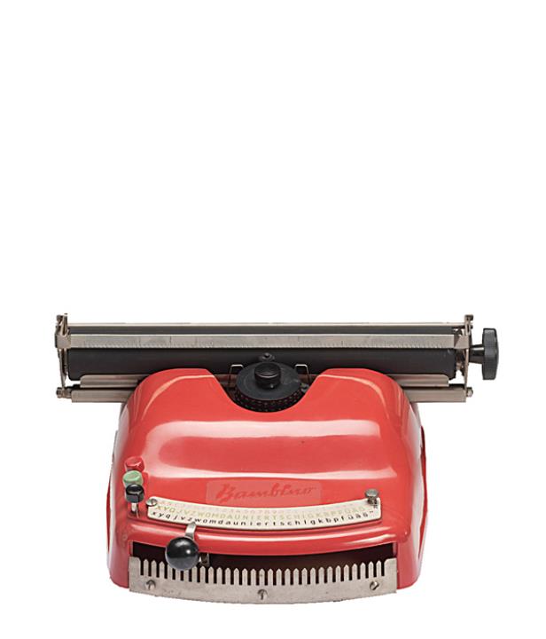 Schreibmaschine Bambino Eigenschaften: Zeiger/Eintaster, Typenzylinder, Groß-/Kleinbuchstaben, Vorderanschlag, Farbröllchen, drei Umschalttasten Besonderheit: austauschbarer Typenträger, Nummer am Rand der Zeichenleiste 20400