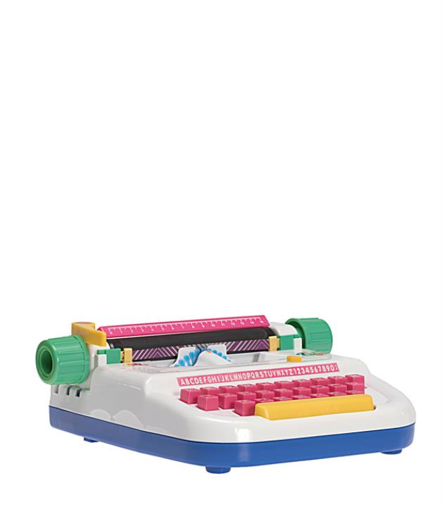 Schreibmaschine My first Office Eigenschaften: Zeiger, Typenrad aus Plastik, Vorderanschlag, Karbonband, ausziehbarer Tragehebel, Spieltastatur mit 26 Tierbildern andere Bezeichnung: My first Typewriter