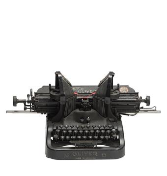 Schreibmaschine British Oliver Modell 15 Eigenschaften: Typenbügel, Oberanschlag, doppelte Umschaltung, Farbband, Tabulator, Breitwagen Tastatur: universal, dreireihig, 28 Schreibtasten Konstrukteur: Thomas Oliver Besonderheit: geteiltes Typenträgerfeld