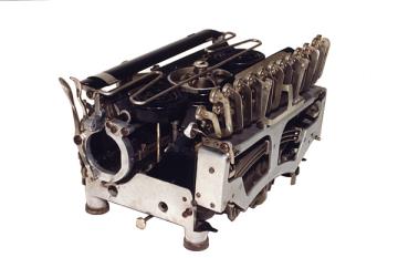 Schreibmaschine Hammond Modell 12; auf Unterboden der Holzabdeckung montiert Eigenschaften: Typensegment, Druckhammeranschlag, doppelte Umschaltung, Farbband Tastatur: universal, dreireihig, 30 Schreibtasten Konstrukteur: James Bartlett Hammond Besonderheit: austauschbarer Typenträger