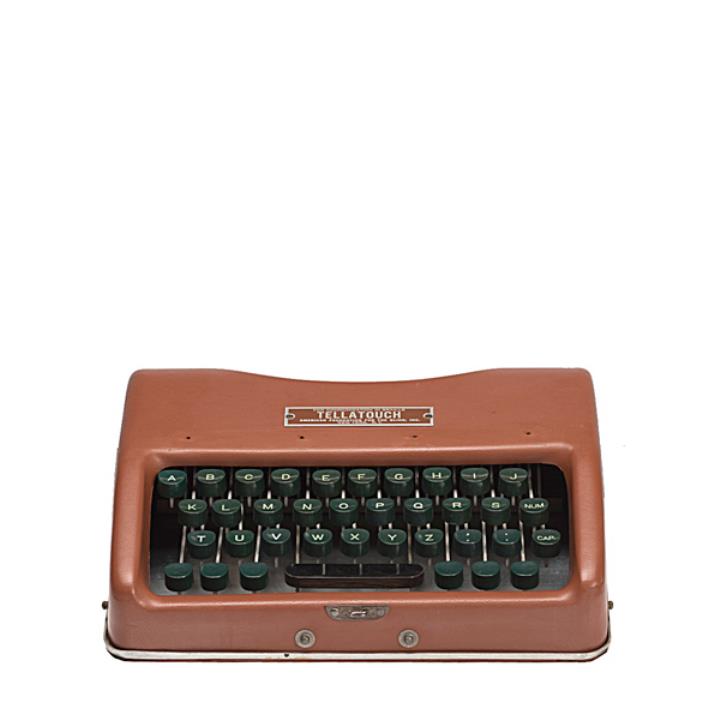 Blindenschreibmaschine Tellatouch Eigenschaften: Punktstifte (6-Punkt-Braille), Unteranschlag, rückseitiger Metallkreis als taktile Lesestation Tastatur: universal, vierreihig, 34 Schreibtasten (28 Buchstaben- und 6 Punkttasten) Funktion: der Anschlag erfolgt direkt auf den Finger, der auf dem Metallkreis anliegt; dies ermöglicht eine direkte Kommunikation zwischen sehenden/blinden und taubblinden Personen Konstrukteur: Jackson Kleber, Charles P. Tolman, Seriennummer T54 300