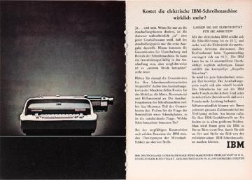 zweiseitige Werbeanzeige für Schreibmaschine IBM polychrom