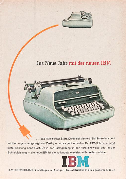 Werbeanzeige für Schreibmaschine IBM polychrom