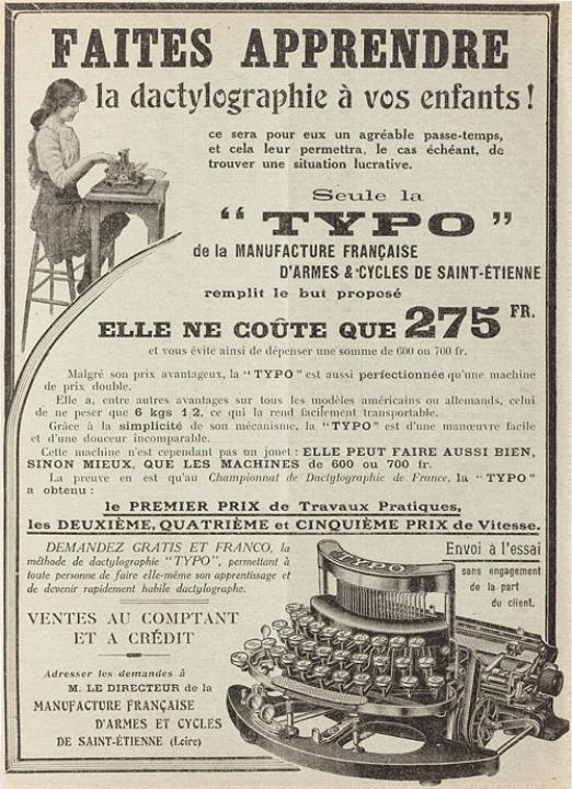 Werbeanzeige für Schreibmaschine Typo monochrom