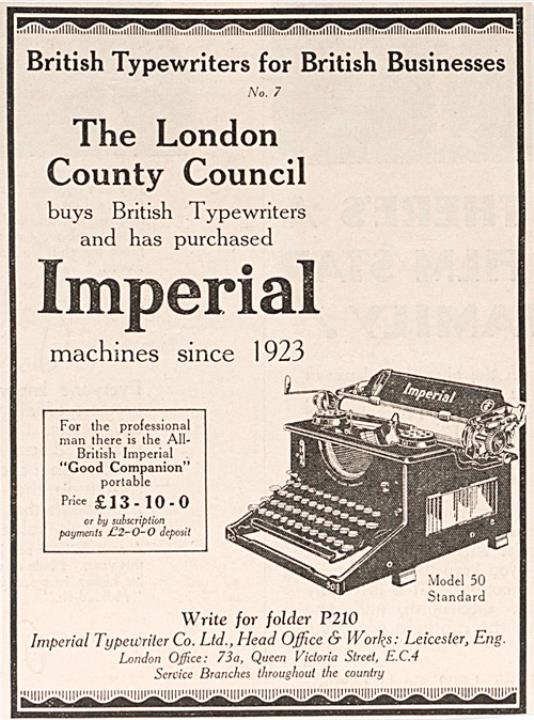 Werbeanzeige für Schreibmaschine Imperial monochrom